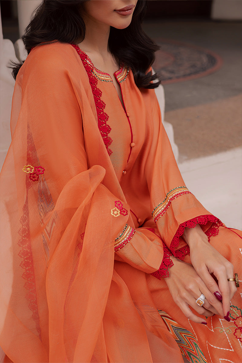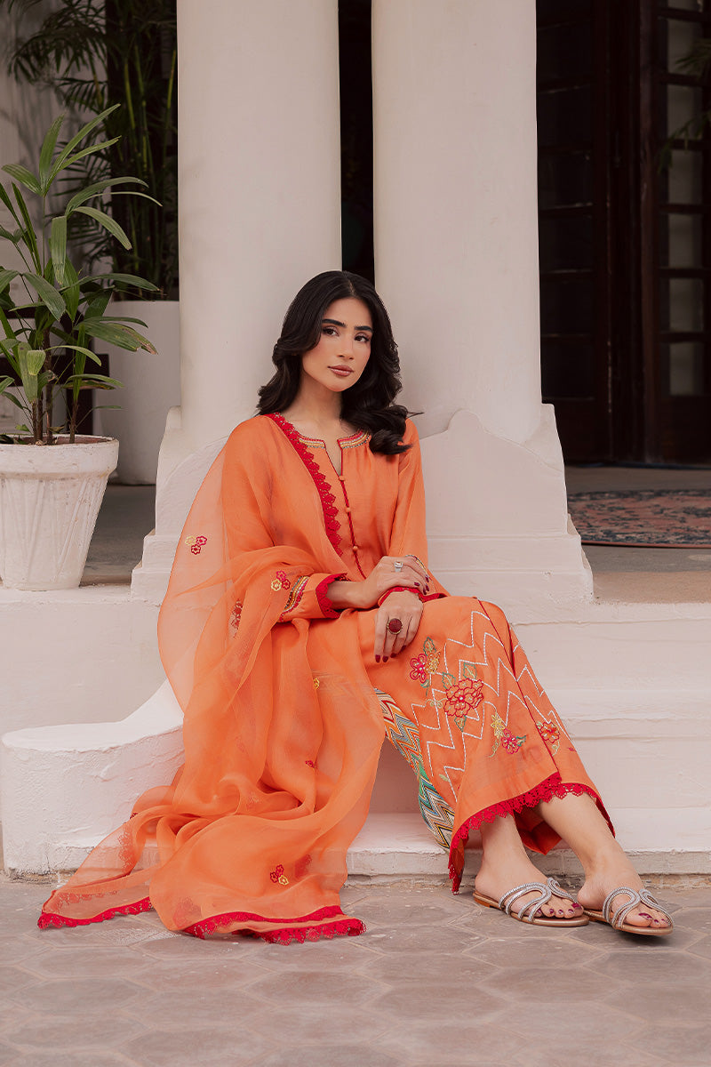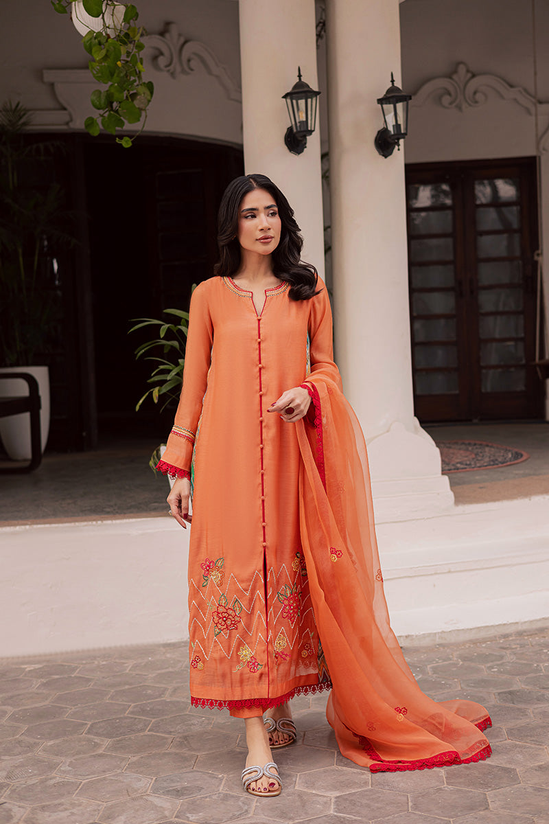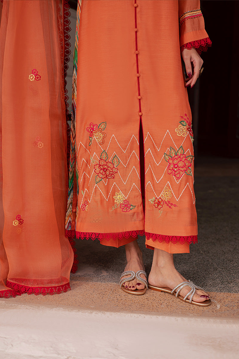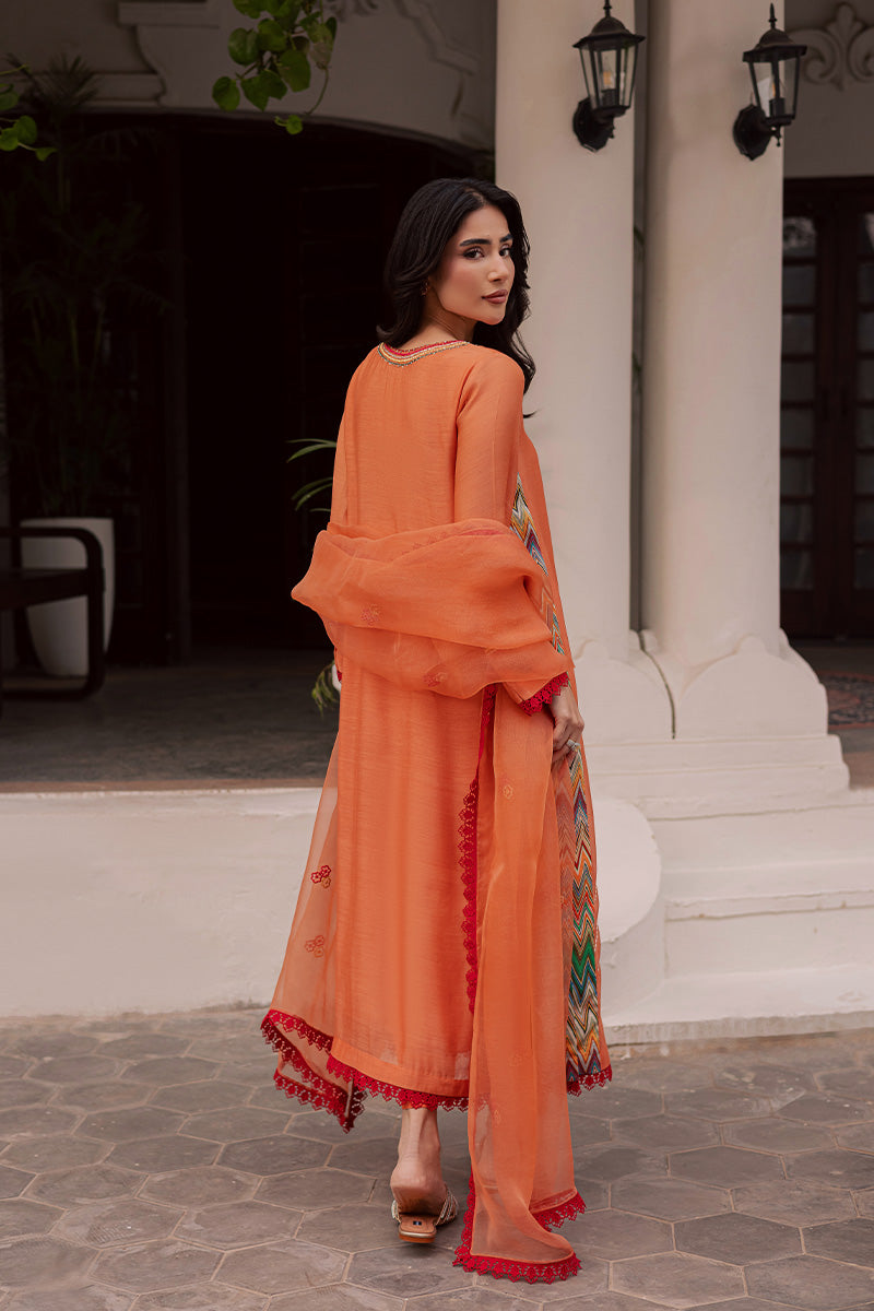 Designed for festive moments, Euphoria offers a sophisticated charm that’s both graceful and contemporary. The front-open long shirt is expertly tailored creating a refined silhouette. Featuring hand embellished delicate embroideries, printed panels and lace trims, this dress is the one where precision meets elegance. The accompanying organza dupatta is light as a feather and is adorned with embroidered florals and finished with lace trim.Model's Outfit