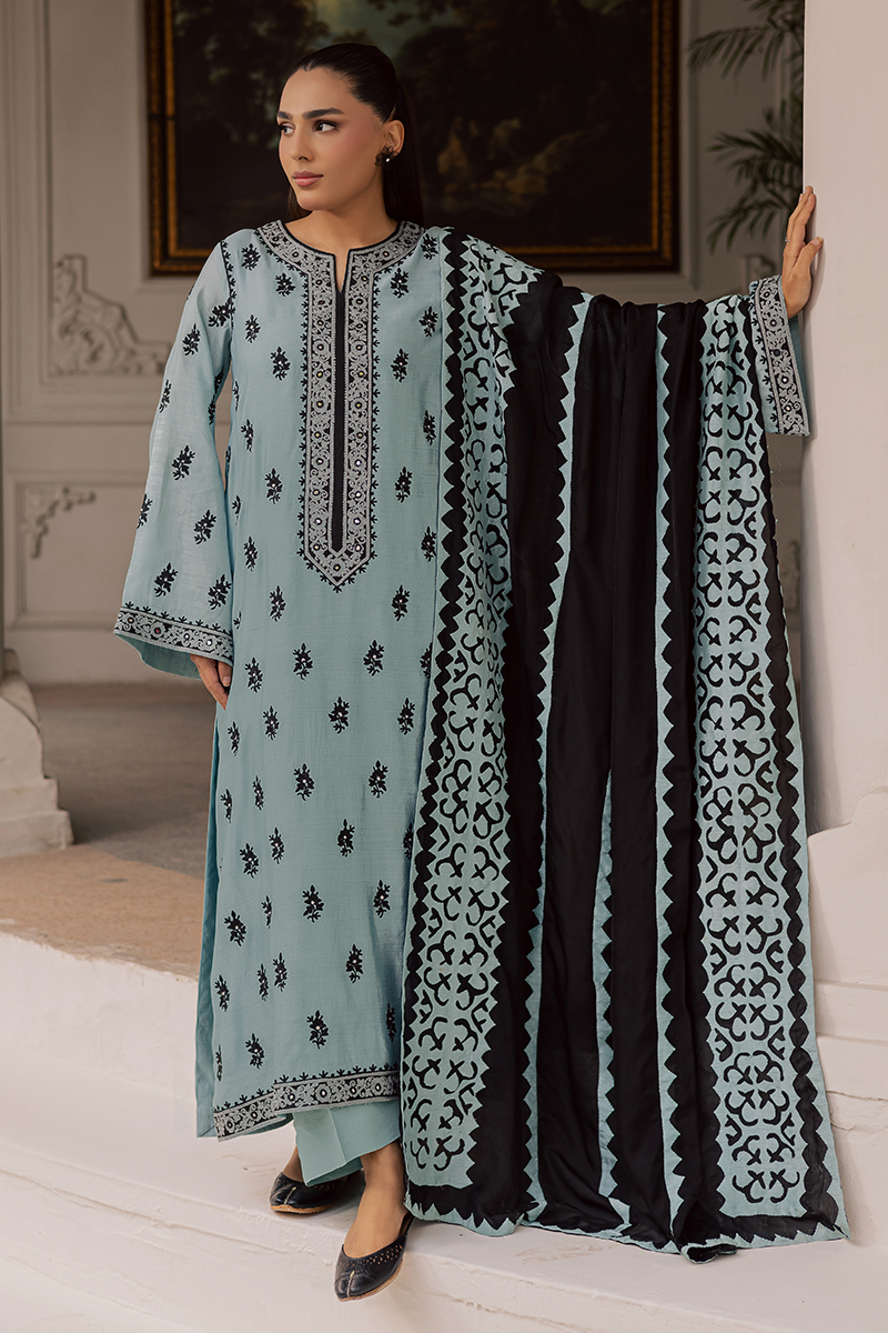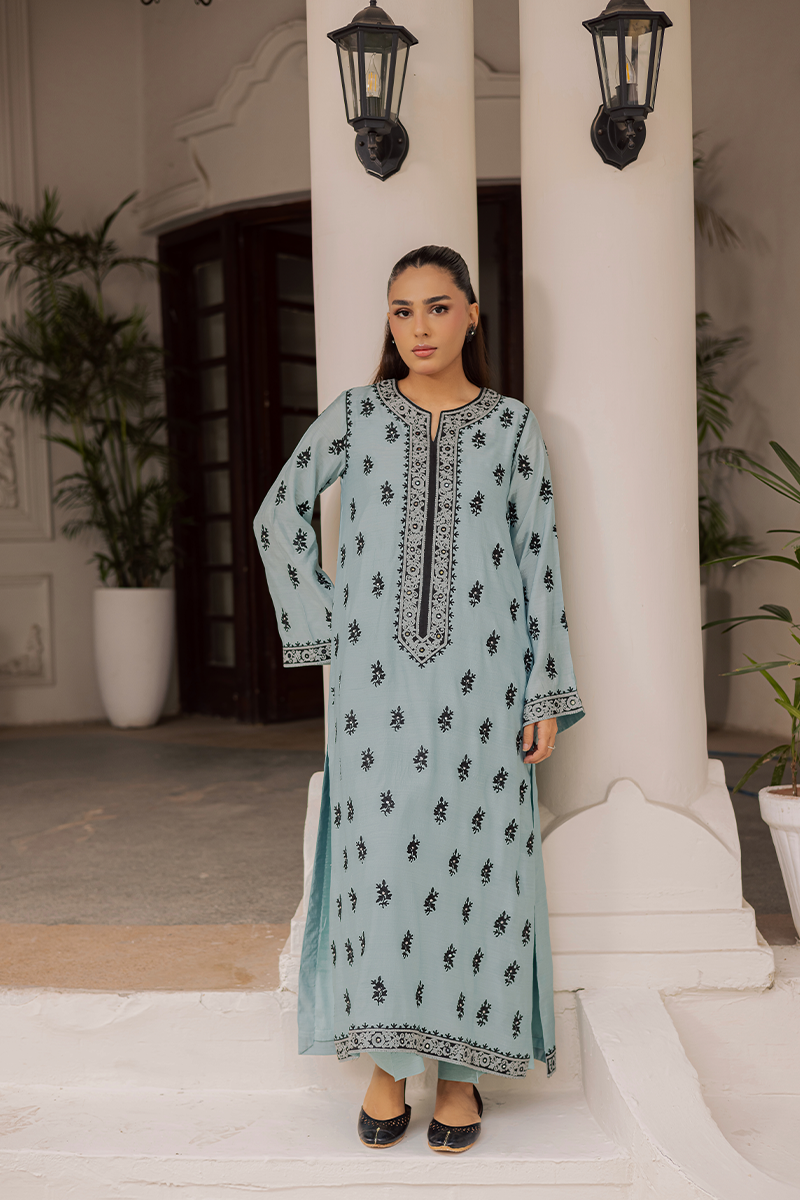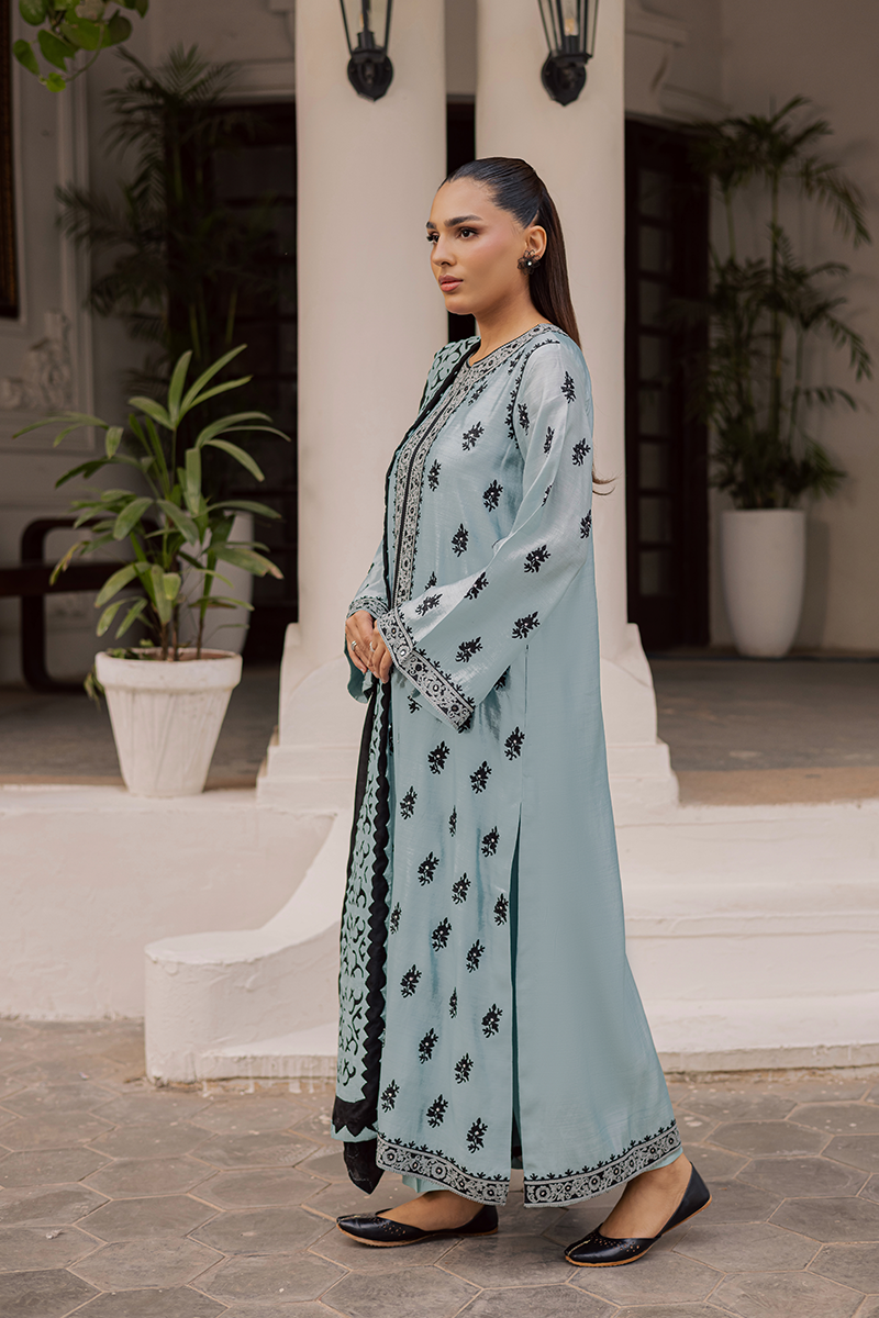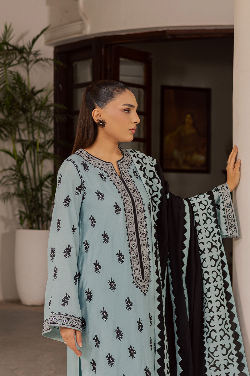 The most befitting choice to celebrate Eid in, Glee is a true portrait of grace that culminates in a masterclass in handcrafted elegance. Meticulous Rilli work on luxurious silk dupatta is nothing short of extraordinary and traditional Aari embroidery gracing the shirt showcases refined work of precision and fine artisanship. Hand-applied sequins further elevate this exceptional piece.Model's Outfit